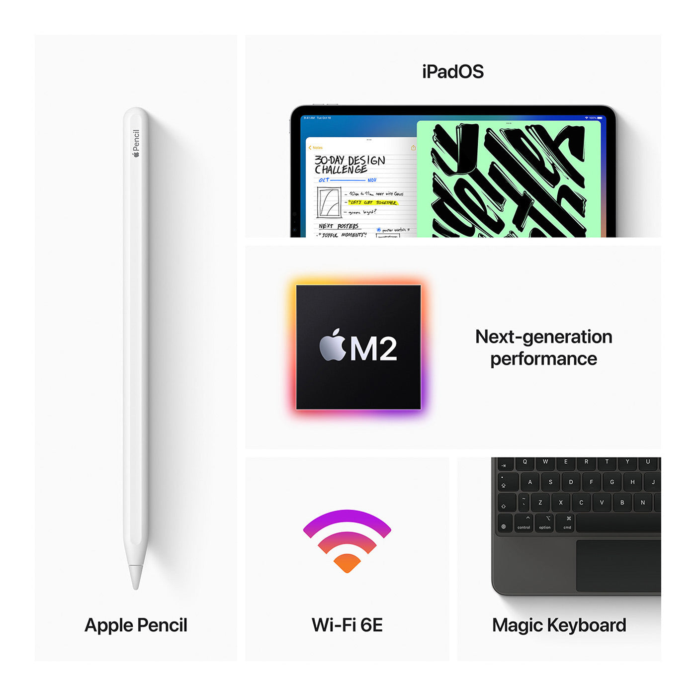 Med sit lette, ultraslanke aluminiumskabinet og en kæmpe 12,9” Liquid Retina XDR mini-LED-skærm, sætter iPad Pro 6. generation standarden for både design og skærmkvalitet. Den understøtter både HDR10 og Dolby Vision og leverer en opdateringshastighed på op til 120 Hz – hvilket betyder knivskarpe billeder og silkebløde animationer, uanset om du tegner, streamer film eller arbejder i krævende kreative apps. Når du vælger en brugt iPad fra Phonetrade, får du denne førsteklasses oplevelse til en brøkdel af nyprisen – uden at gå på kompromis med hverken kvalitet eller udseende.